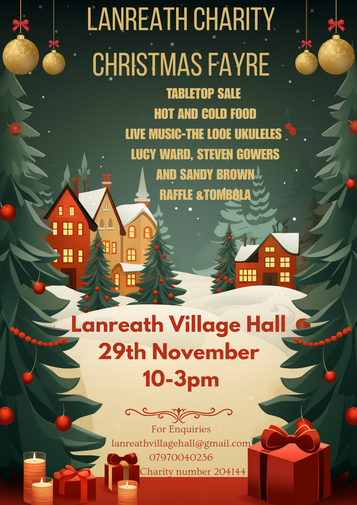 29th Christmas fayre 10-15:00 Football-Tregony 13:30 |